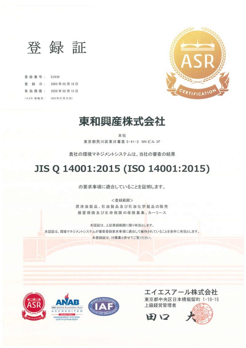 東和興産は、お客様が満足していただける石油関連製品の販売を通じて、循環型社会の実現に向け努力してまいります。