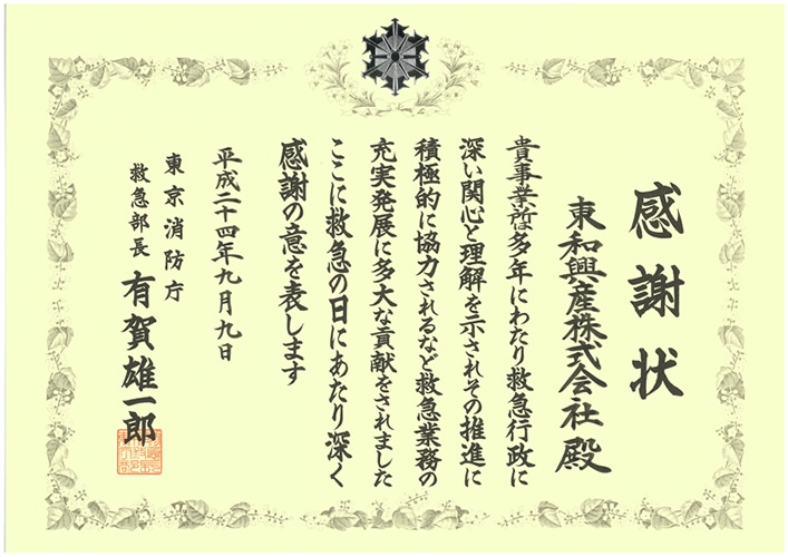 | 2012年 | 24年 | 東京消防庁より救命講習表彰 |