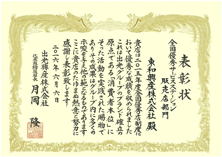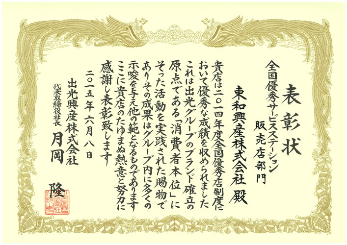 | 2005年 | 17年 | 販売店部門社長賞 P大森SS社長賞 |